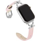 Genuine Leather Band Compatible with Apple Watch Women 38mm 40mm 41mm 42mm(2024 series 10), Designer Slim Leather Strap with D-Shape Gold Metal Buckle for iWatch Series 10 9 8 SE 7 6 5 4 3 2 1, Beige