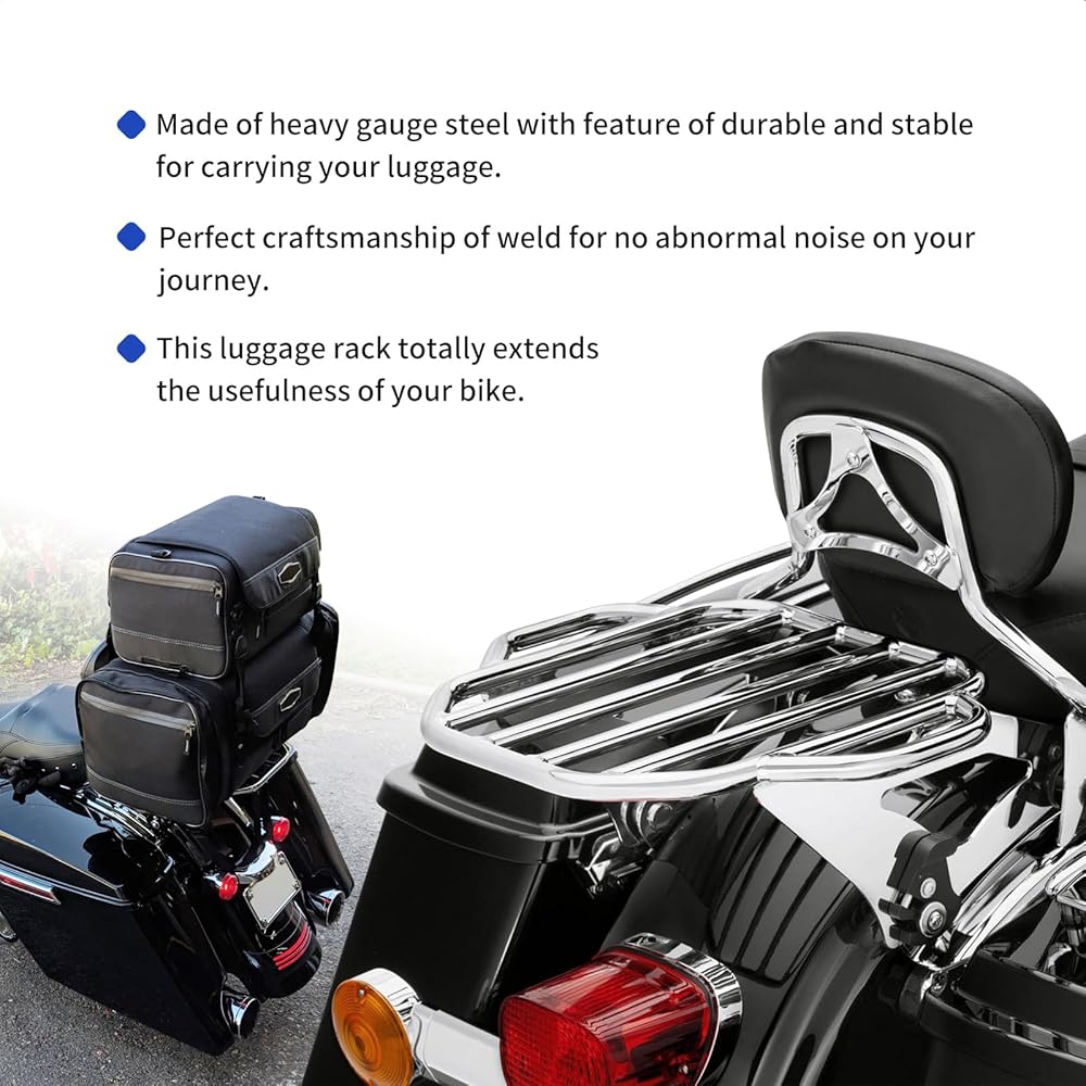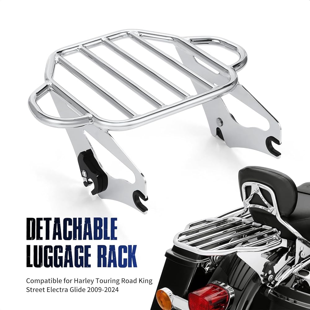 Fitment: Aftermarket detachable luggage rack is compatible for Harley Touring Models 2009-later. Require separate purchase of 4-point docking hardware kit to mount.