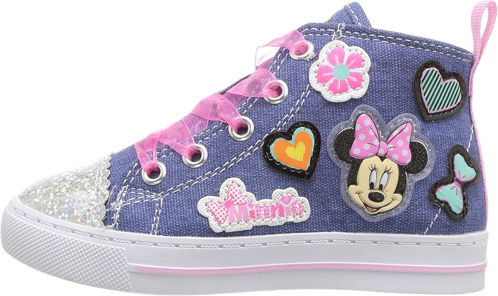 Disney Junior Little Girl's Minnie Mouse Denim High Top Sneakers Shoes