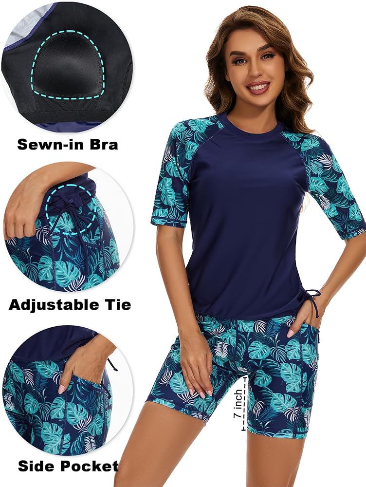 ➤Sewn-in Bra Rash Guard Top: The sewn-in bra rash guard top provides enough support for the breasts and won't move around