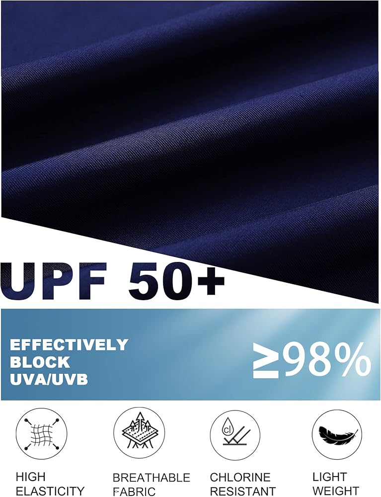 ➤High Waist & 7 Inseam Swim Shorts: The high waist swim shorts can cover your belly, 7 inseam length provides full coverage and does not roll up easily
