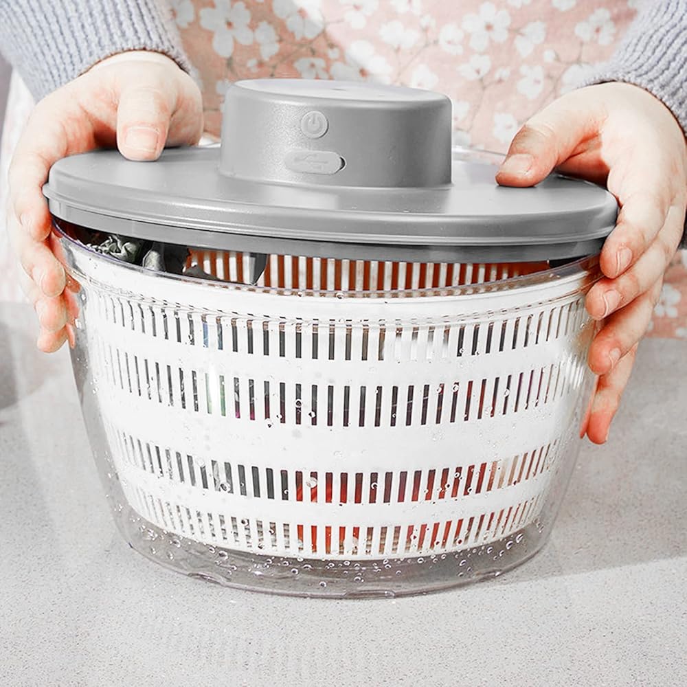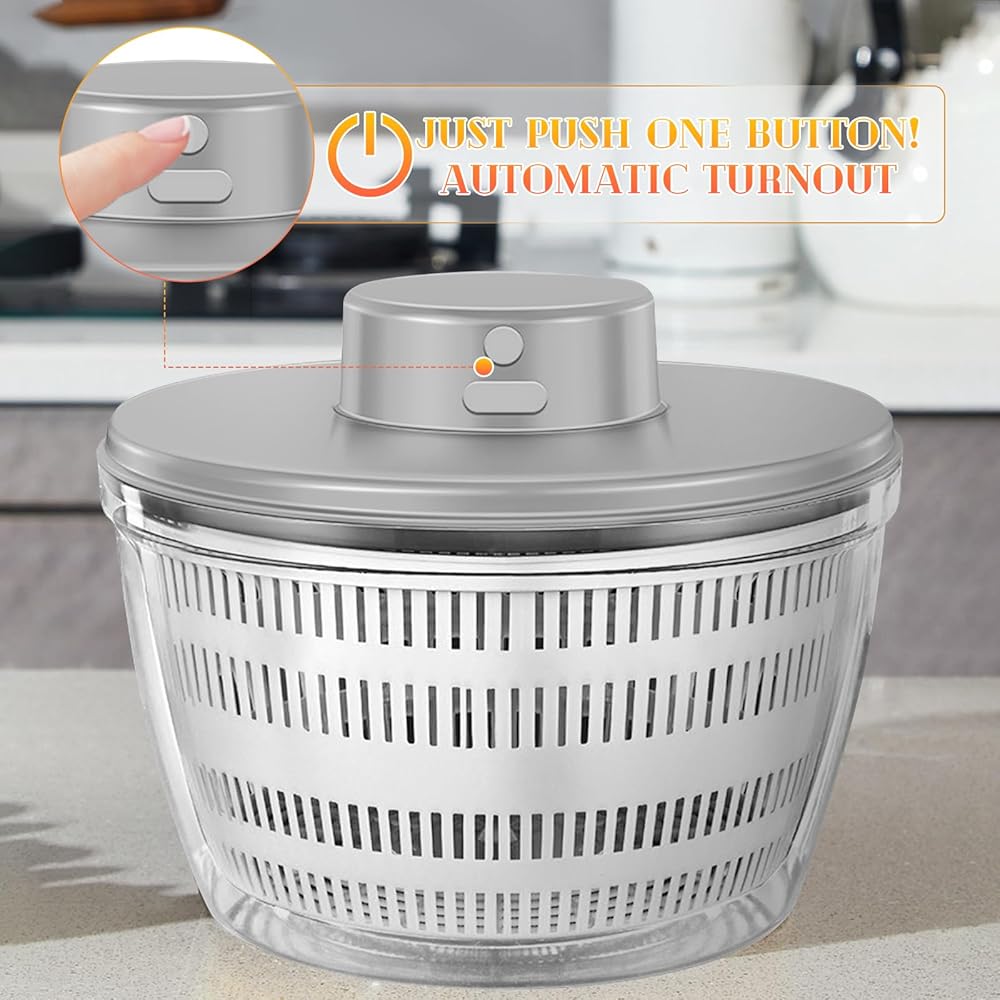 🍉Drainage Design:The basket with a simple drainage system for washing and drying can help you clean vegetable colanders and quickly dry salads with the highest efficiency.Deffectively reducing the residue on the vegetables and giving you the driest, crispest greens . The quick dry electric vegetable spinner makes it so easy to prepare nutritious foods.Save your time and free your hands.