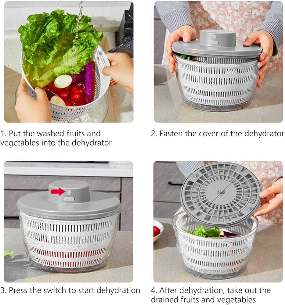 🥦Easy To Use: Vegetable dryer uses USB for fast charging, one-key start, automatic stop after 10s of operation. And it can be used more than 100 times when fully charged.Electric vegetable dryer is different from other time-consuming and labor-intensive manual operations. It allows you to drying vegetables and fruits more quickly and efficiently and take your salad-making work to a higher level.