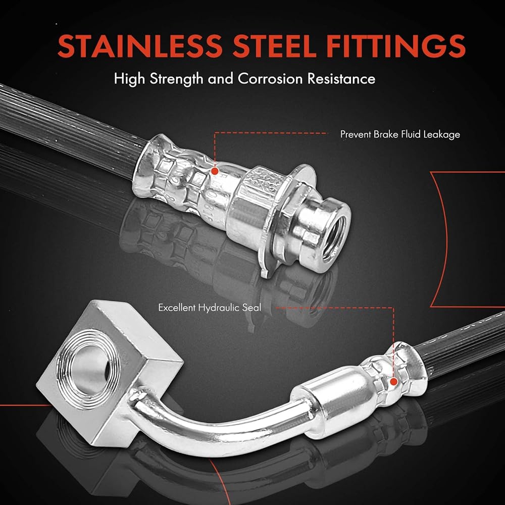[Superior Quality]: A-Premium Brake Hydraulic Oil Hose consists of EPDM rubber and stainless steel fittings, meeting DOT certification standards, Federal Motor Vehicle Safety Standards(FMVSS 106) and SAE J1401 Standards. Premium craftsmanship and materials ensure superior quality and durability, and excellent performance enhances the whole braking system.