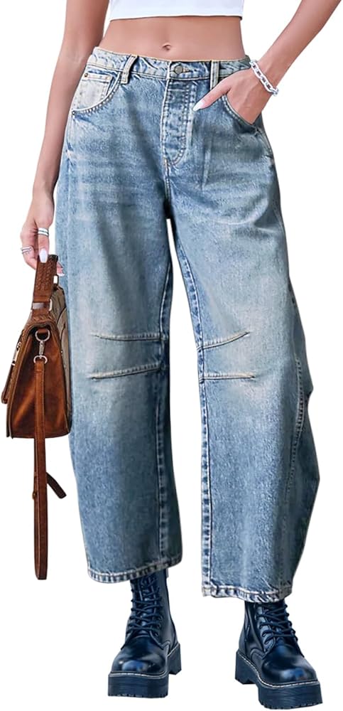 التصميم: يتميز الجينز الأسطواني الخاص بنا بارتفاع متوسط، ومريح، وفضفاض، وواسع الأرجل، وطول الكاحل، وسحاب وزر للإغلاق. التأكيد على شخصية Y2K وعصرية.