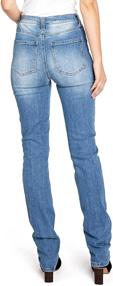 High-rise jeans with a relaxed, straight leg fit and a 31" inseam. Traditional 5-pocket construction with zip fly and button closure. Classic denim feel with minimal stretch.