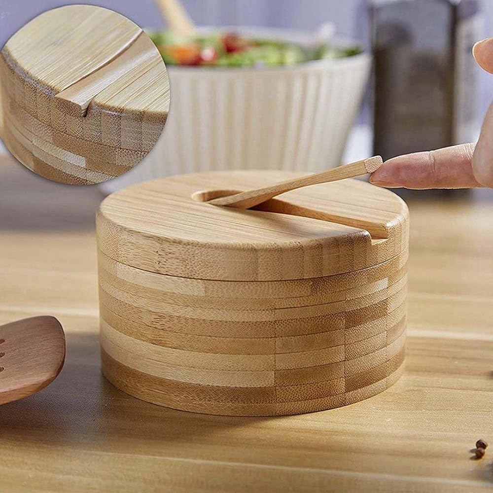 Crafted from sustainable bamboo: Our salt cellar is made from eco-friendly bamboo, ensuring durability and a natural aesthetic for your kitchen.