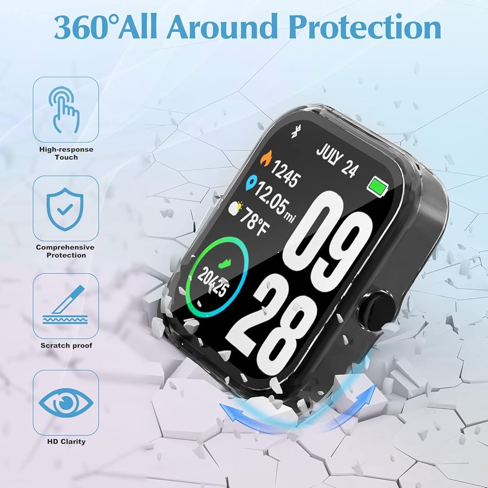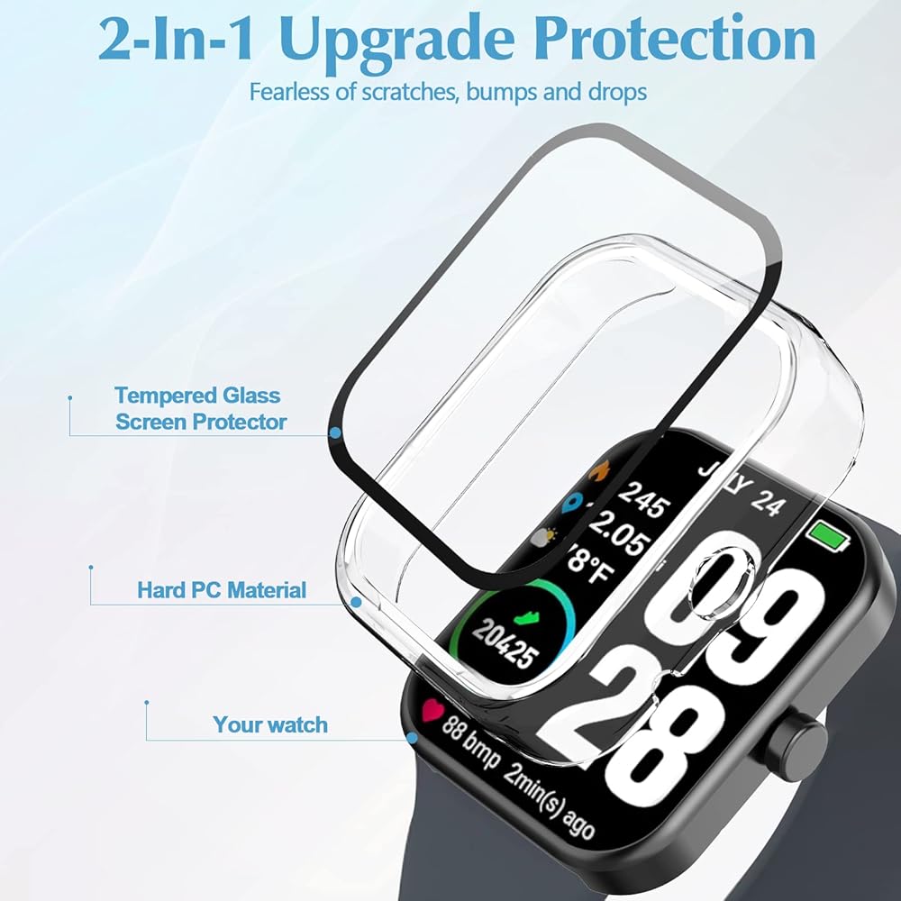 【All-Around Protection】Made of hard PC and tempered glass screen protector 2 in 1 design, protects your TOZO S2 watch from scratch, bumps, and accidental drops. PC material is not easy to be eroded, more durable, won't turn yellow, not turn deform is more solid than TPU material.