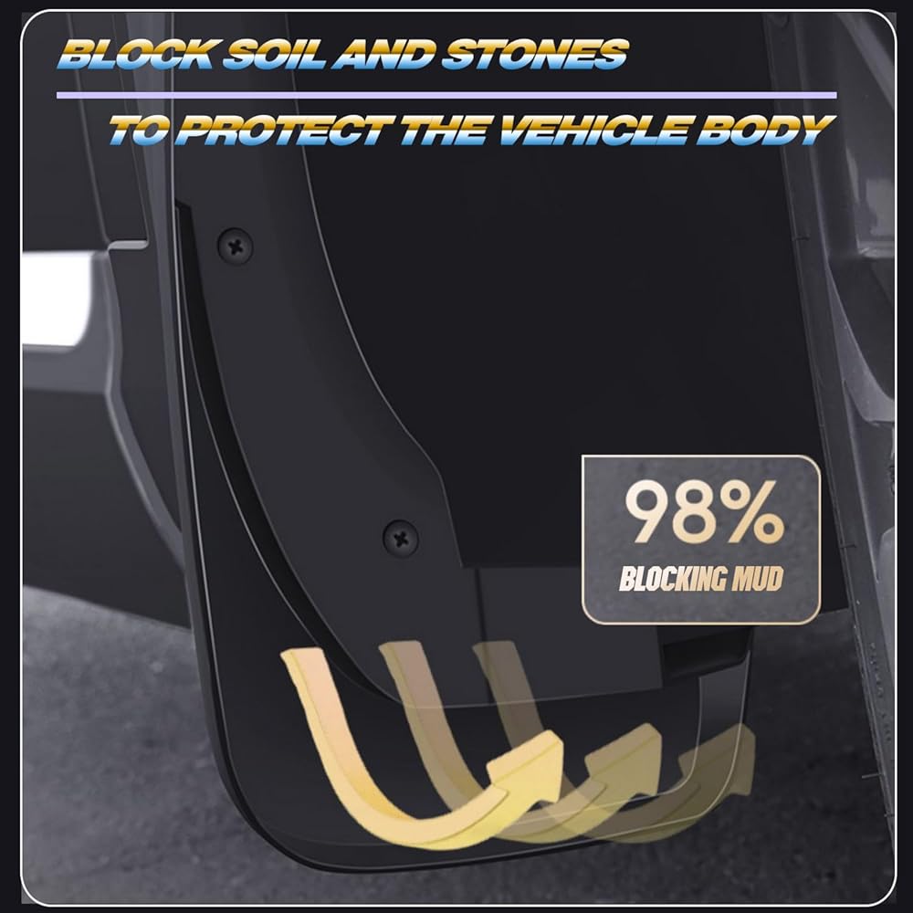 Dedicated Design: These mud flaps are specifically designed to fit your vehicle perfectly, ensuring a seamless and secure installation.