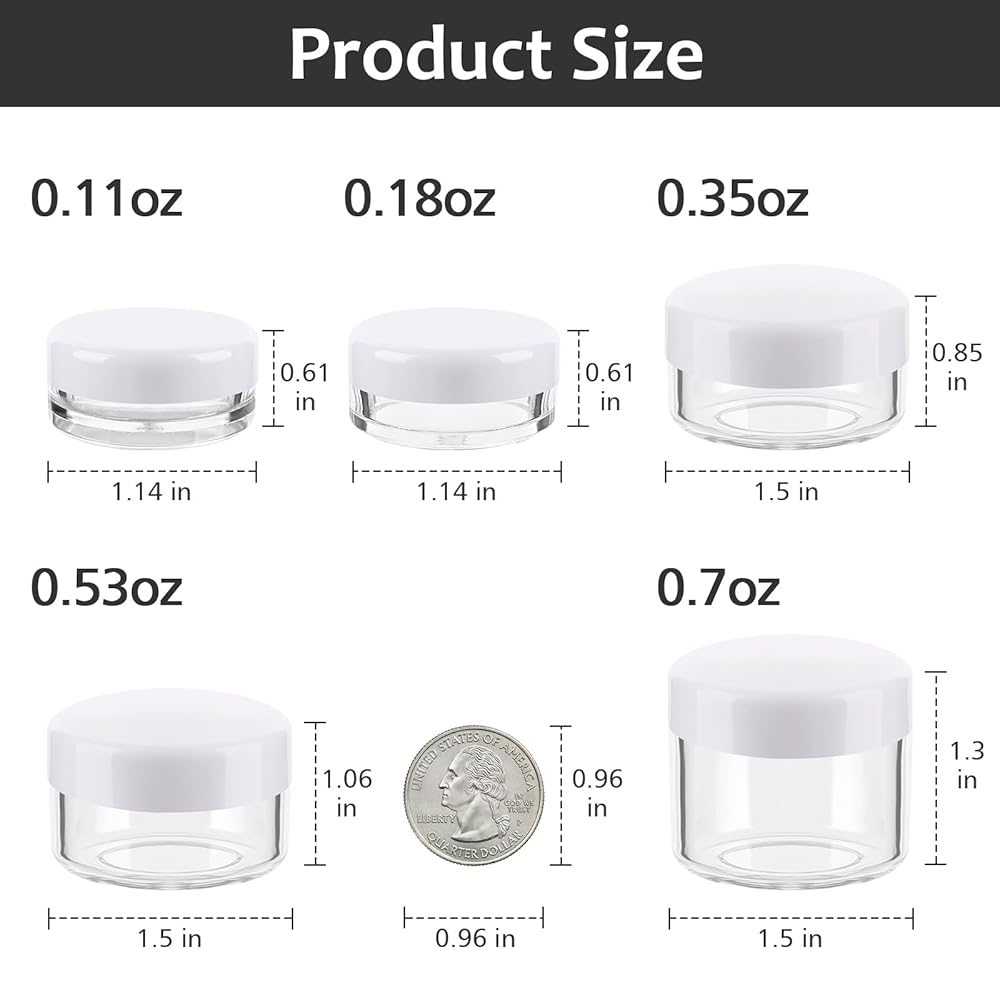 3/5/10/15/20 gram size sample containers, each of the volume container has 2 pieces with black and white lids, convenience for different use.