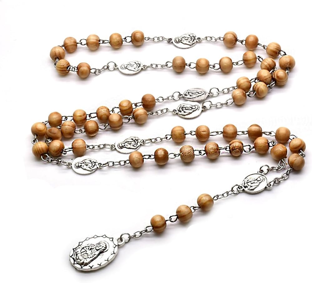 Size: Beads: 7*9MM Pendant size: 10cm (3.94) inches Folded size: 48cm (18.9) inches Total length: 56cm (22.05) inches or so Pendant Virgin: 2.7*1.7 (1.06*0.67) inches Seven-way Crucifix: 1.1* 1.8cm(0.43*0.71)