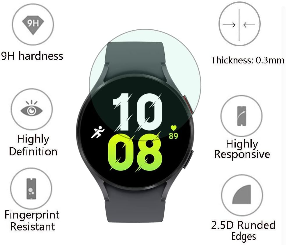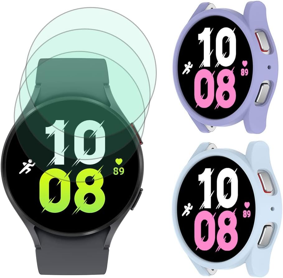 Designed for :Compatible for Samsung Galaxy Watch 5 (44mm) / Galaxy Watch 4 (44mm) ,(3 pcs) Tempered Glass Film and (2 pcs) Soft TPU Protective Case