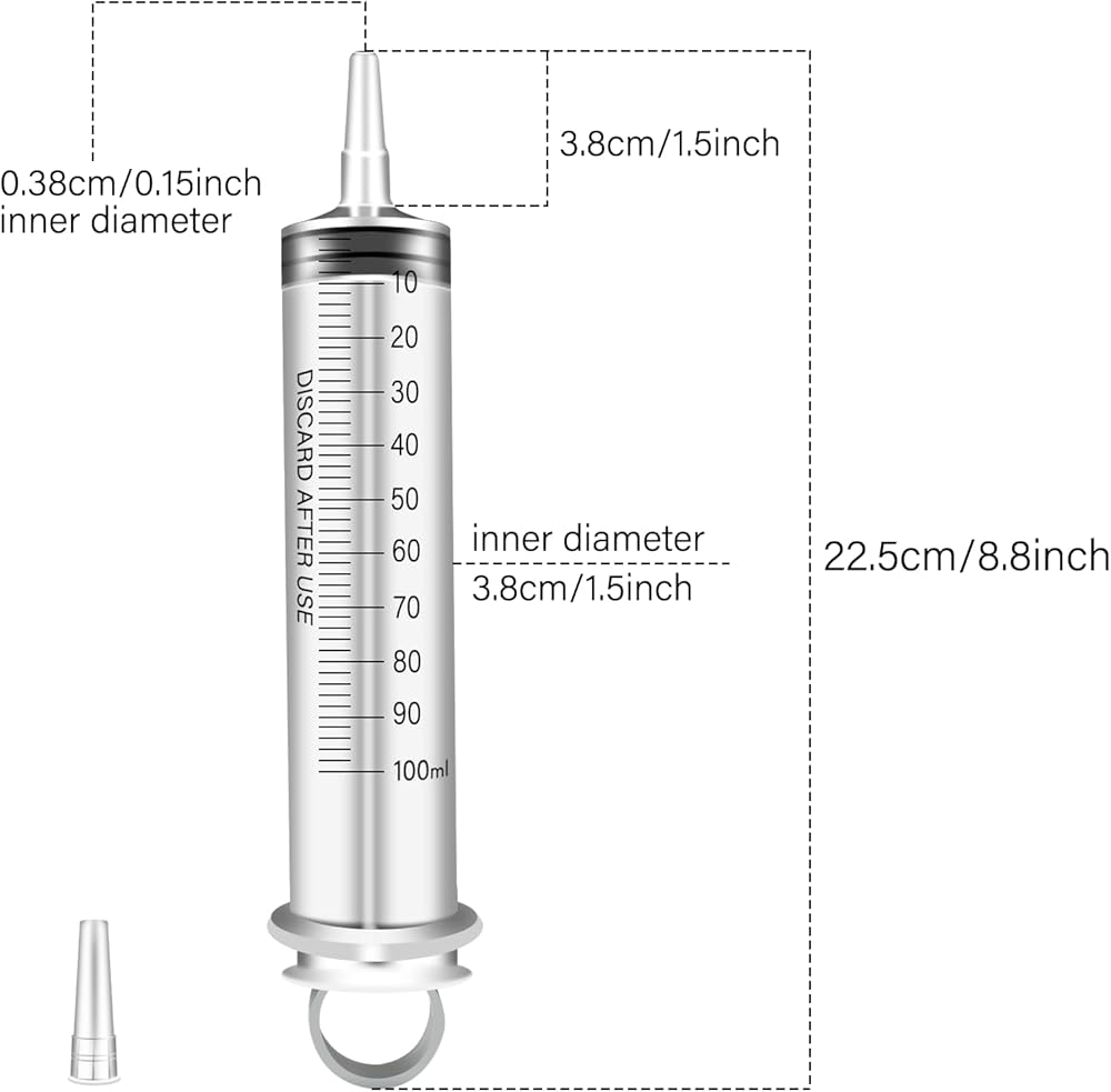 【Package includes】: 60ml 4pacs syringes with tip cap,Sufficient for use and replacement.