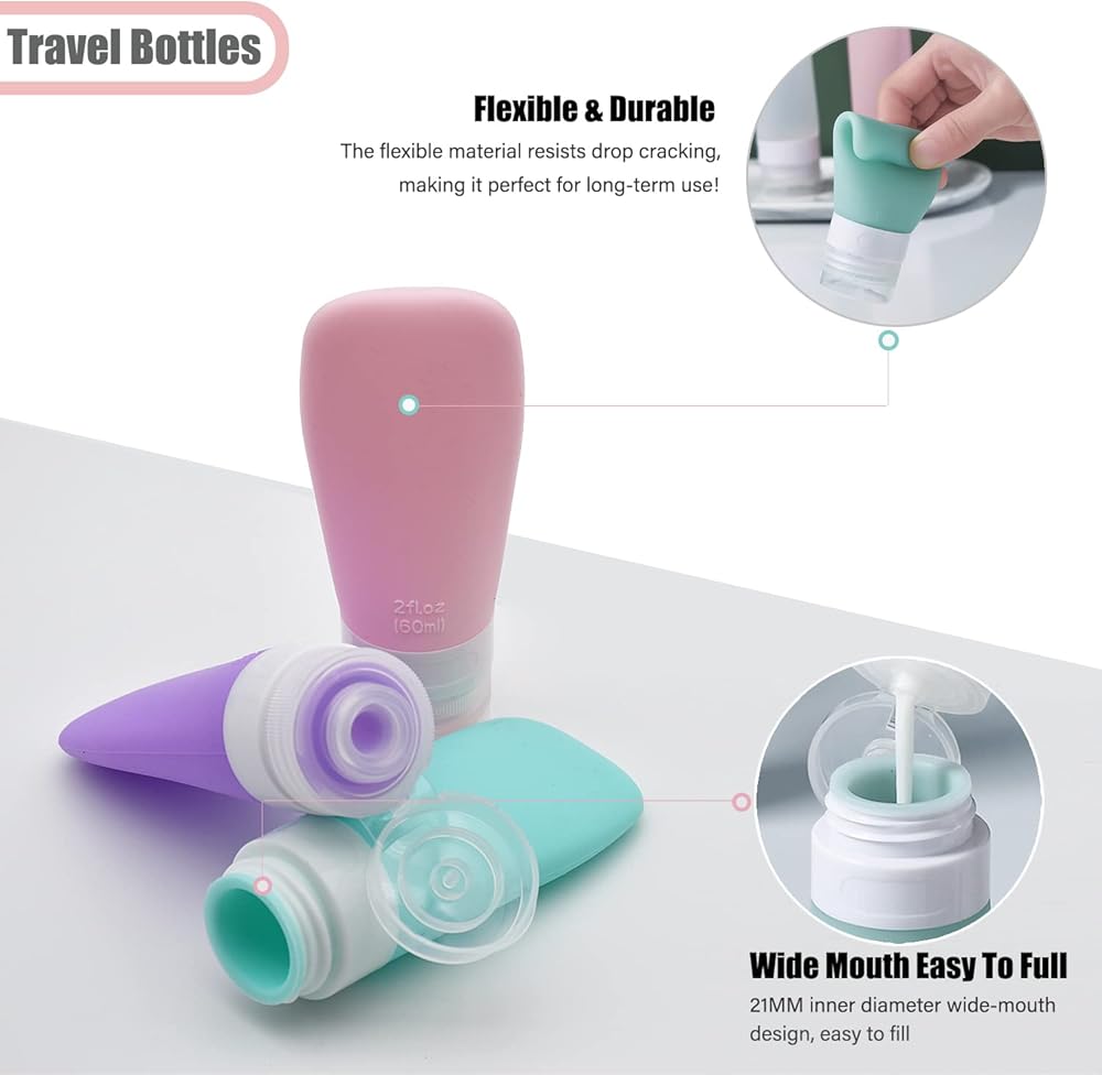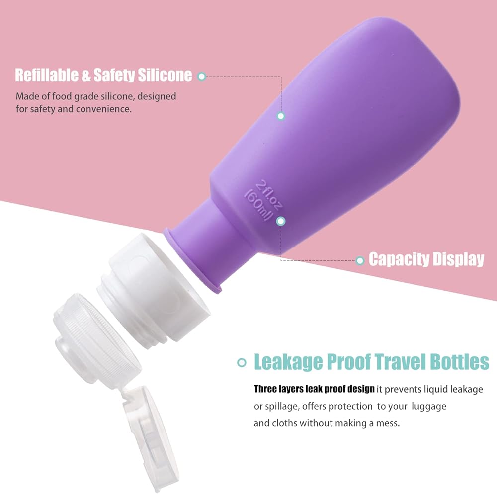 【Leakage Proof Travel Bottles】With three layers anti-leakage design, these soft and squeezable silicone travel bottles will only dispense bottle contents when its silicone body is pressed, offers protection to your luggage and cloths without making a mess.