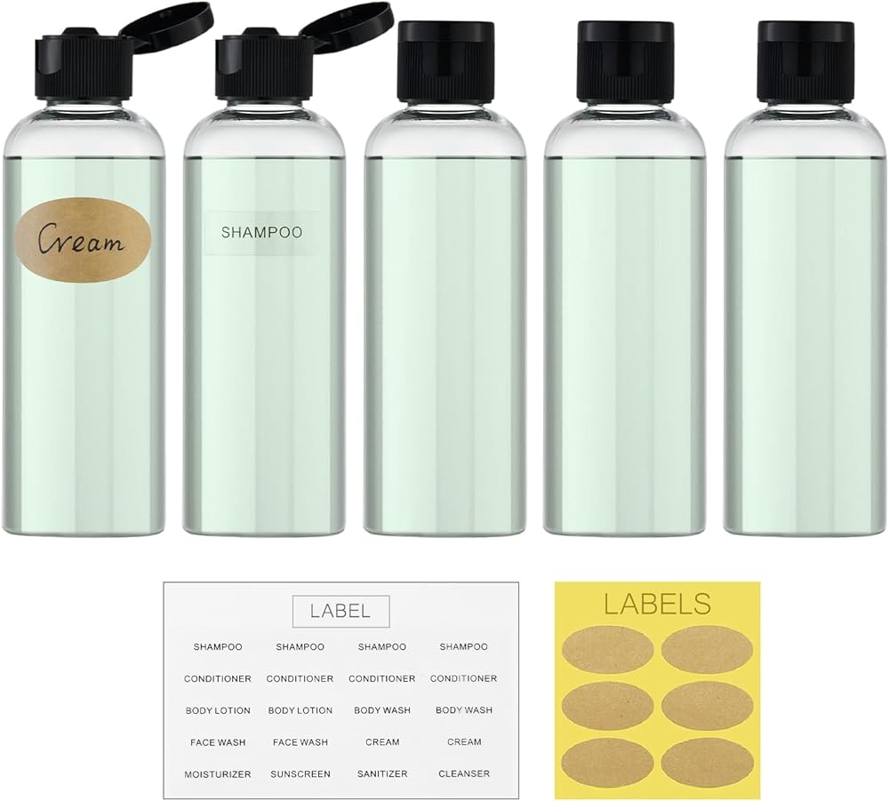 【FEATURES】3.4oz(100ml) travel size bottles with flip caps meet all your requirements for refilling the liquid of cosmetics such as lotion, toner, oil and etc whether at home or traveling