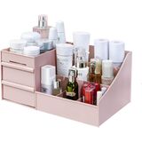 Simbuy Makeup Organizer for Vanity— Bathroom Countertop Cosmetics Organizer with Drawers for Lipstick, Brushes, Lotions, Eyeshadow, Nail Polish and Jewelry (Pink)