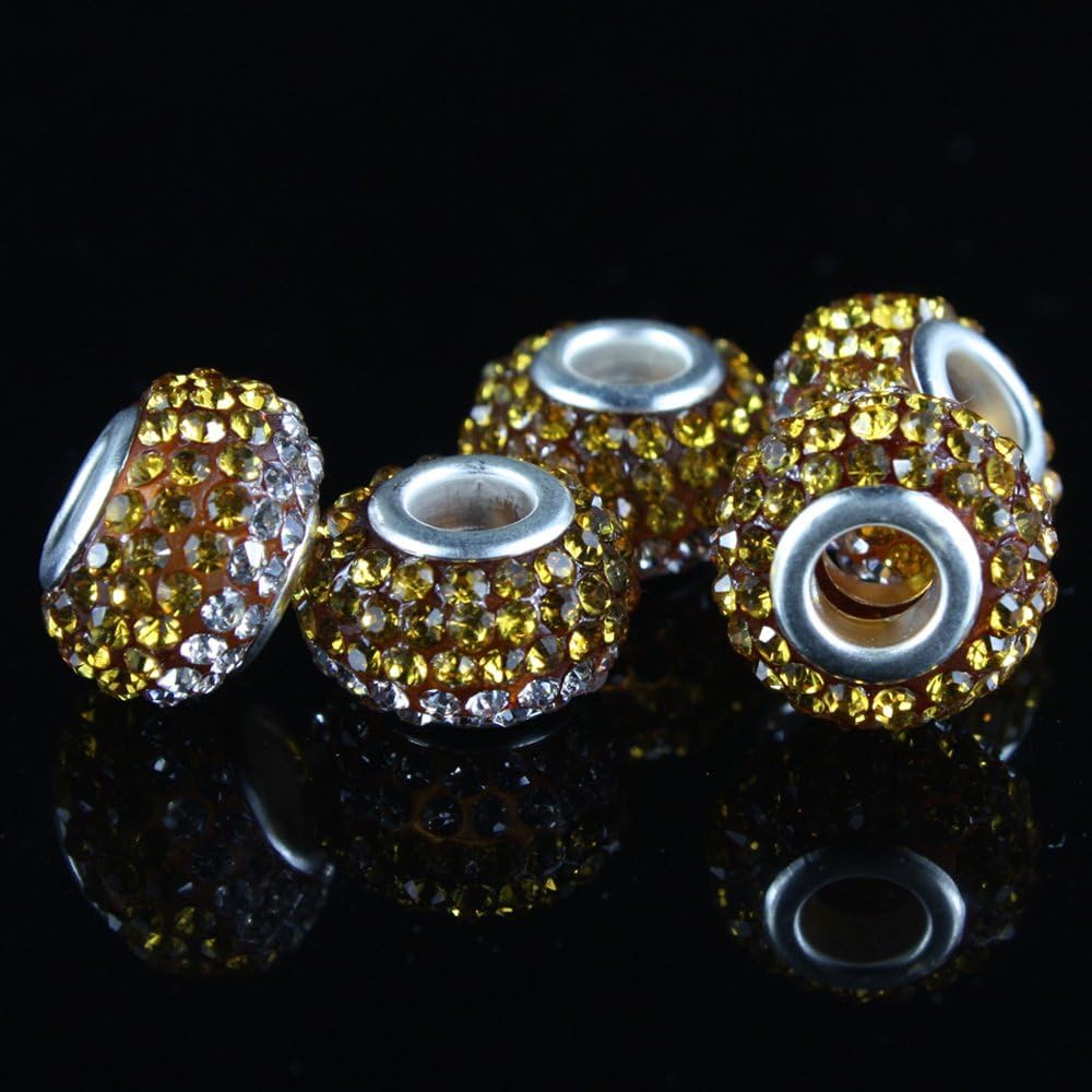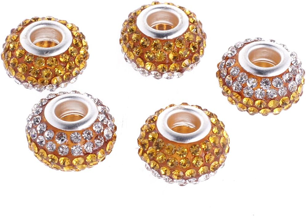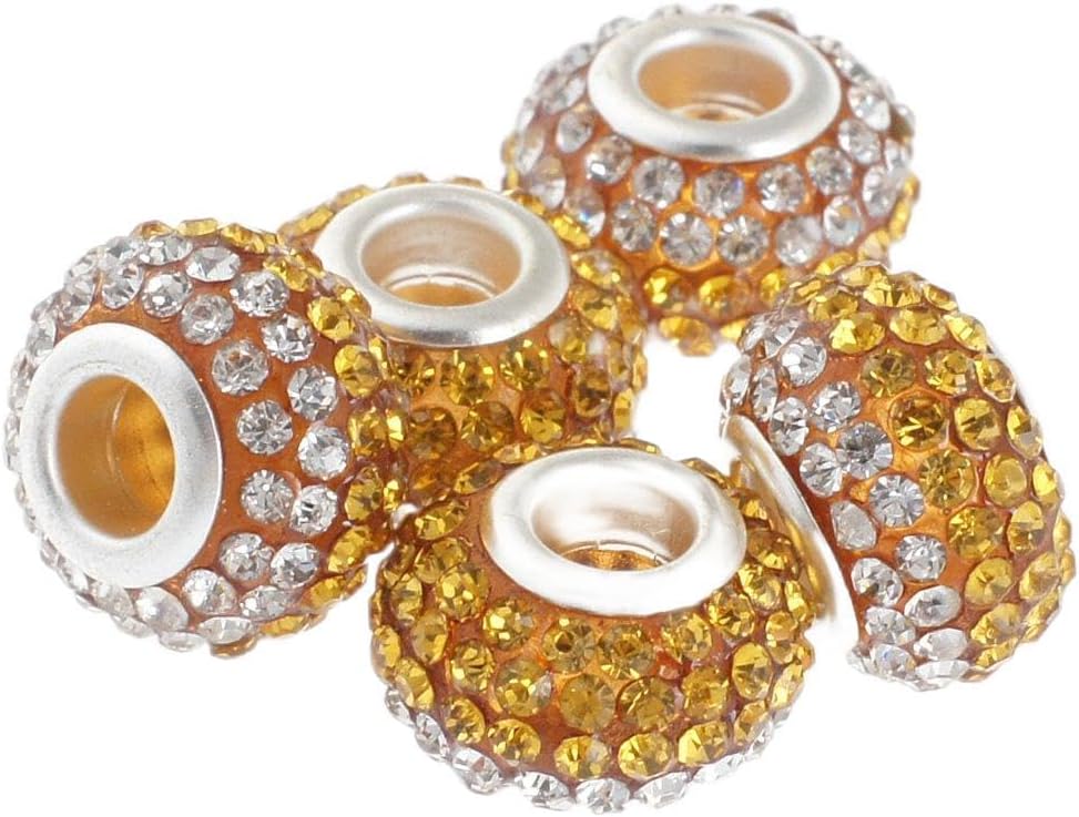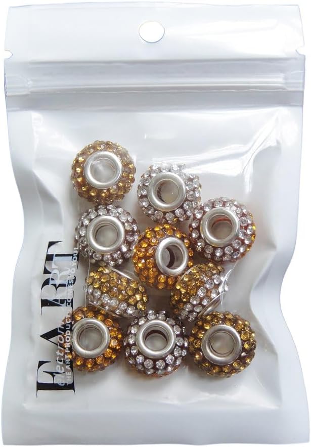 RUBYCA Big Hole Czech Crystal Large Charm Beads fit European Bracelet (10pcs, 15mm, Gold and White)