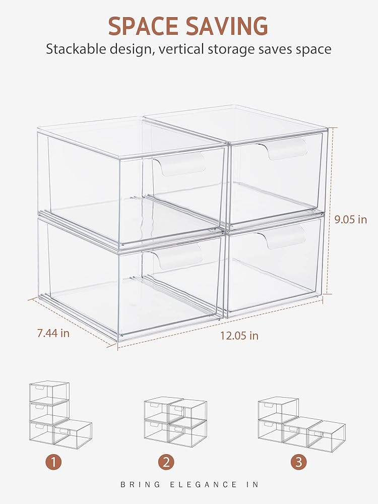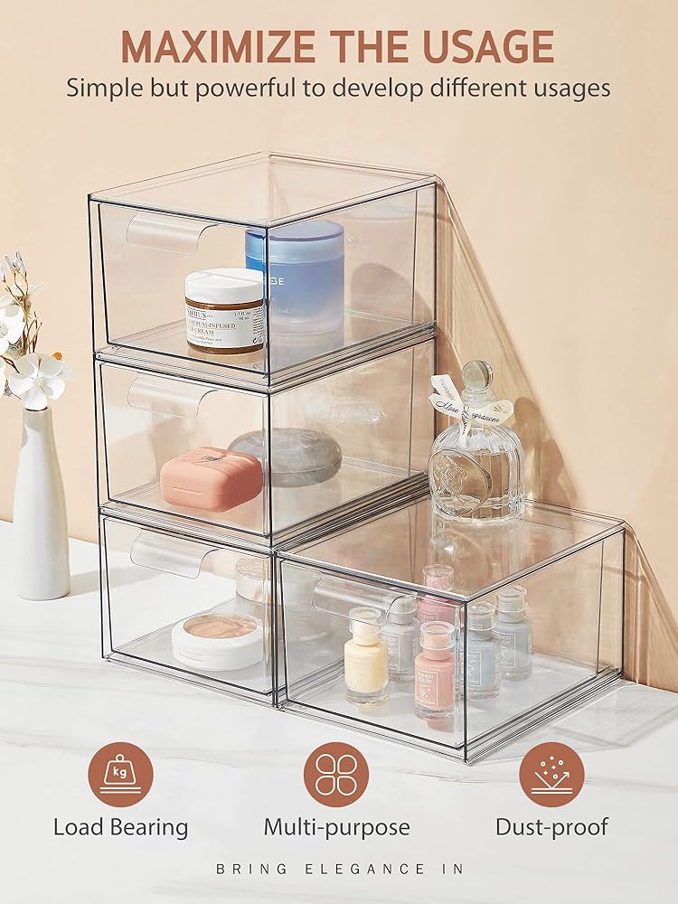 Stackable Design – Decide its use shape according to your needs, stackable design allows you to use storage space more flexibly. You can maximize the usage of this drawer organizer by putting things on top of it.