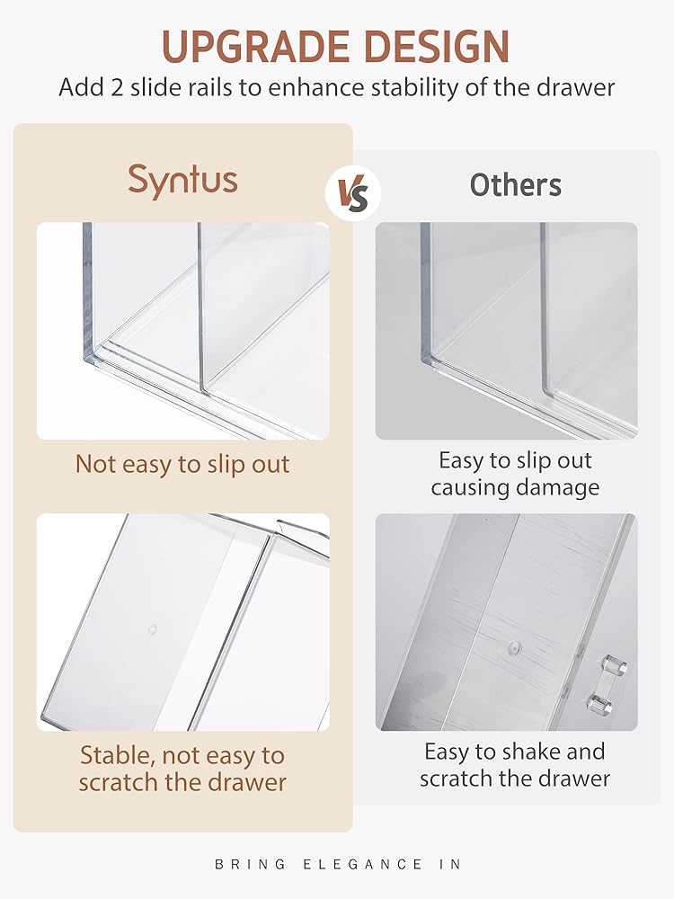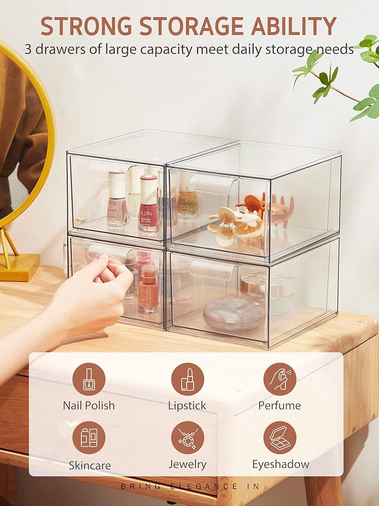 Strong Storage Ability – Comes with 3 makeup drawer organizers, each measures 7.44 × 5.98 × 4.37 inch. Provide plenty of space for your daily needs.