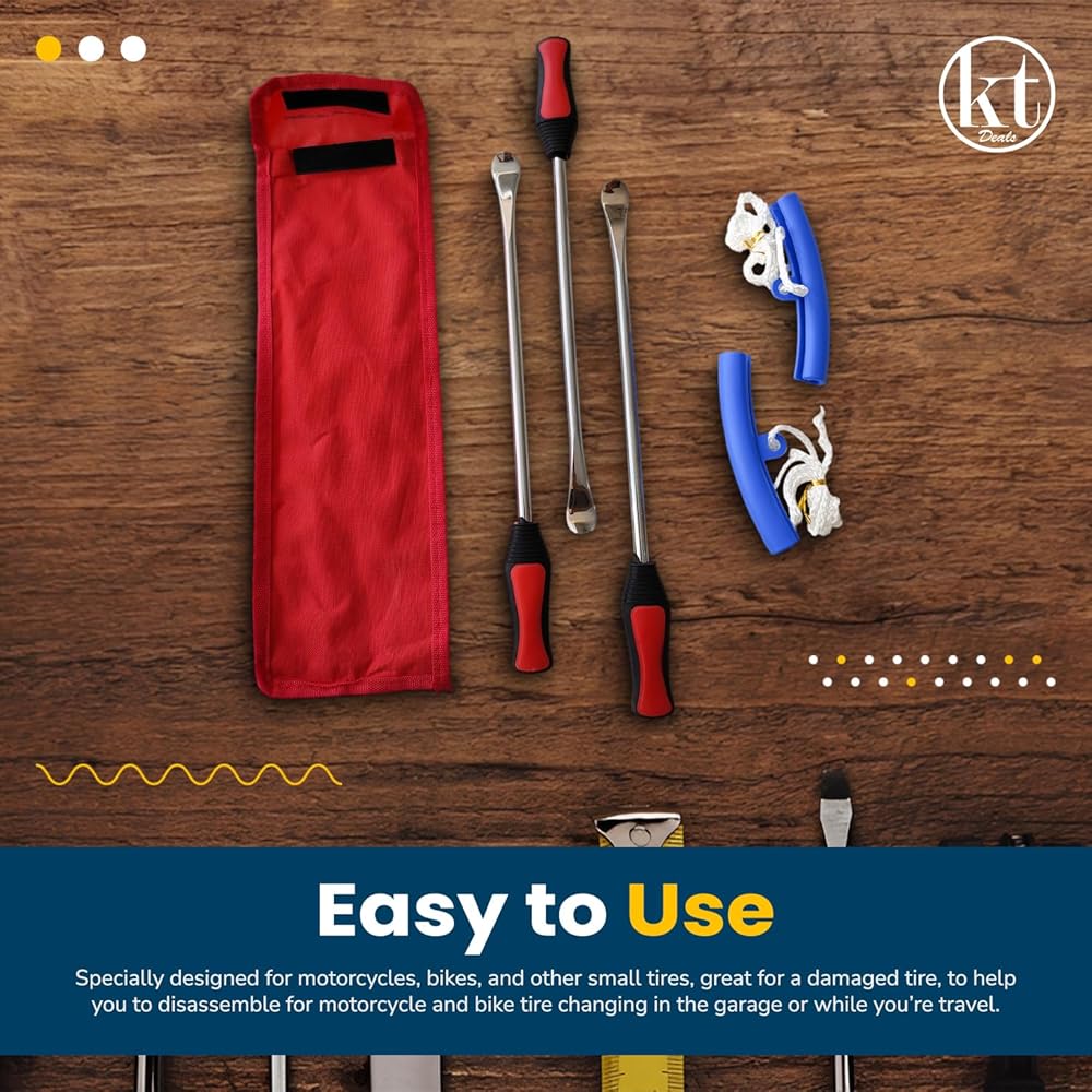 Perform the Repair - Whether you need to replace an inner tube or the tire entirely, this Changing kit is built for the job. Easy to use and specially designed for motorcycles, bikes, and other small tires, great for a damaged tire, to help you to disassemble for motorcycle and bike tire changing in the garage or while you're travel.