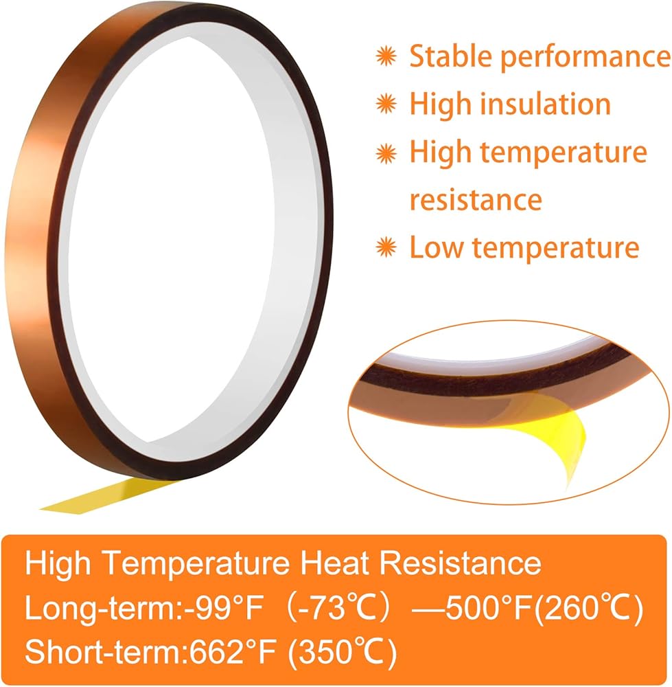 EXCELLENT THERMAL DURABILITY:Heat resistant tape is a polyester film tape with a high temperature resistant adhesive,and the long-term temperature is -73°C (-99°F) to 260°C(500°F),the short temperature is 662 ℉(350℃).