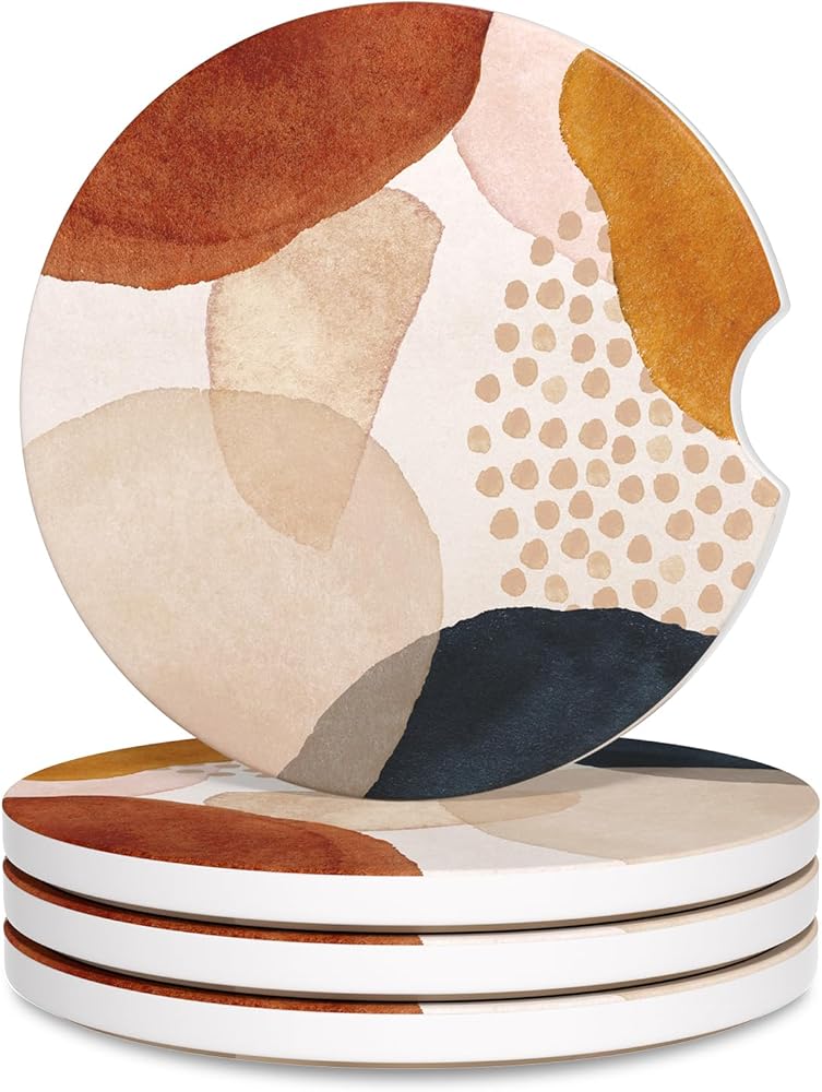 【Universal Size】Set contains 4 pieces round universal absorbent ceramic car coasters, the diameter is 2.56 inch, the thickness is 0.23 inch. Standard size, wide compatibility, fits 99% brands of cars in the market and also can be used at home and office. Perfect for cars, vans, SUVs and trucks. We recommend measure your car holder diameter before you buy to ensure compatibility.
