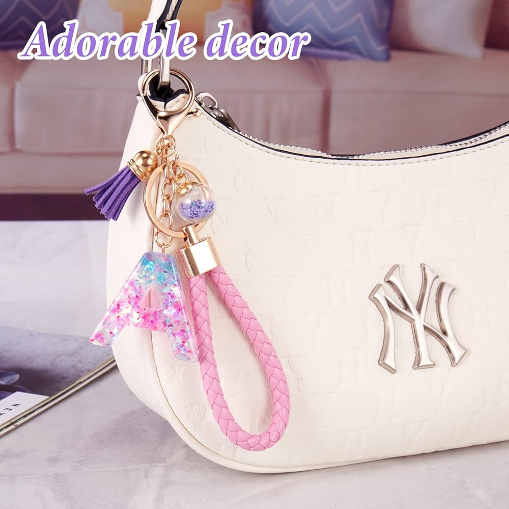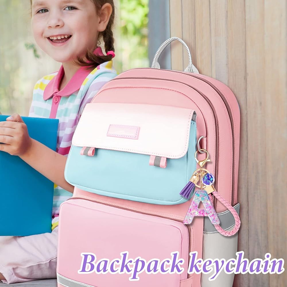 💝【Backpack Keychain】: The Aesthetic letter key chain is perfect for hanging on girls and kids backpack or bag.