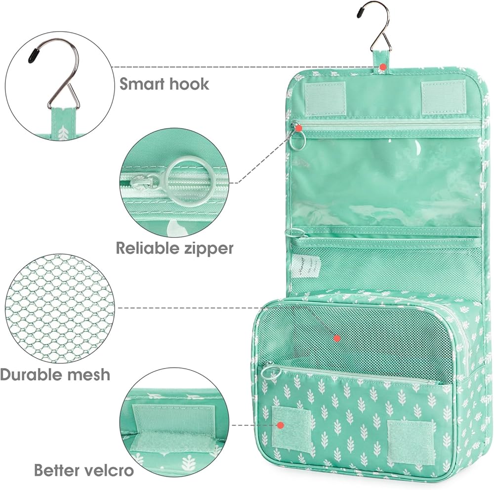 ✅ SMART HOOK - Buit-in hook allows hanging the toiletry kit from towel rack, coat hook or whereever is available, making your toiletries and cosmetics displayed well for easy access and saves counter space as well.