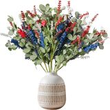 Bibelot 10 PCS 4th of July Patriotic Artificial Stem Picks - 14.5" Independence Day Decor with White, Blue & Red Flowers Memorial Day Branches for Spring Festival Home & Office Table Centerpiece