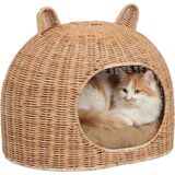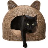 Make your cat feel at home with our novelty cat ear shaped wicker bed. Designed with a cozy dome shape and cat ears, this bed will fit in well in any bohemian or cottage styled home. At 20 inches wide, this bed can fit any adult cat.