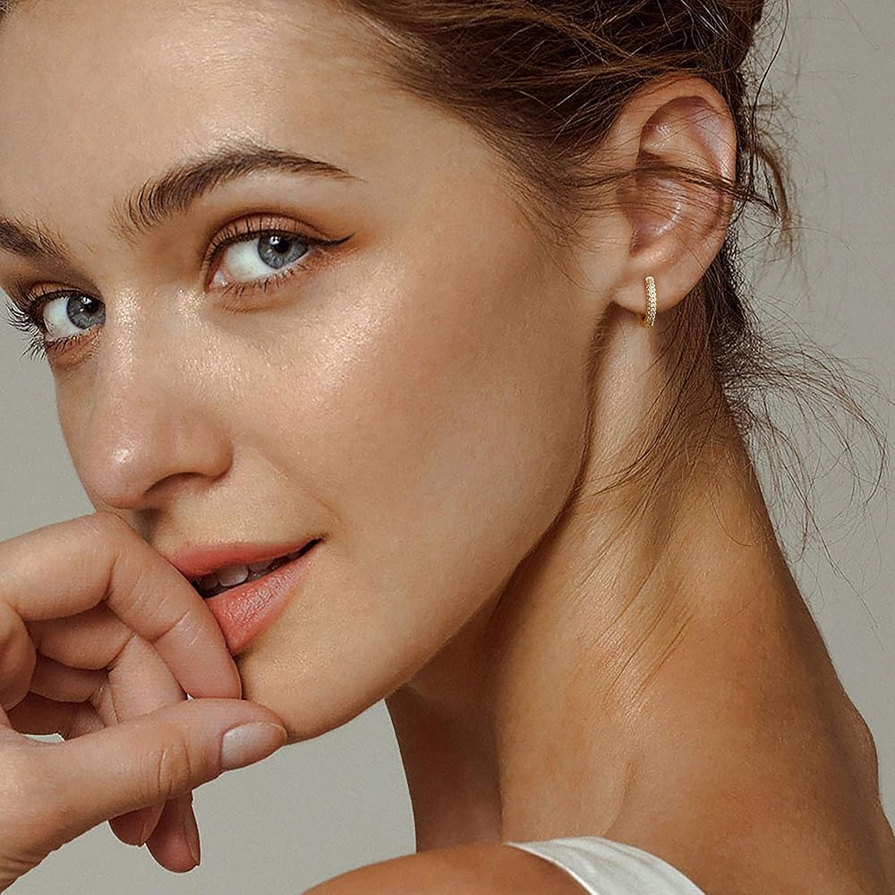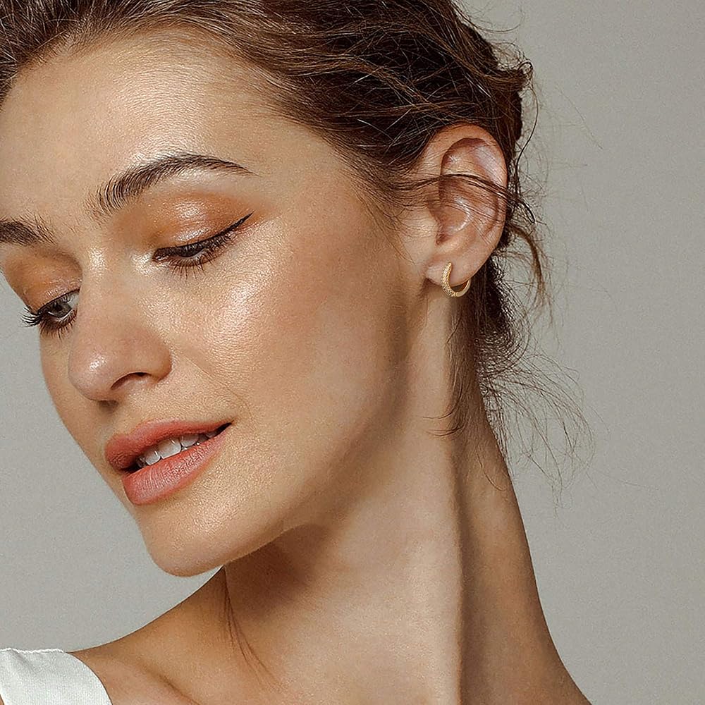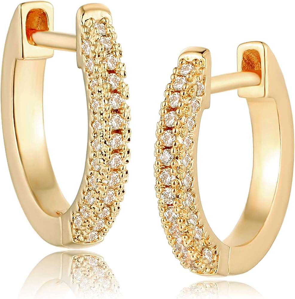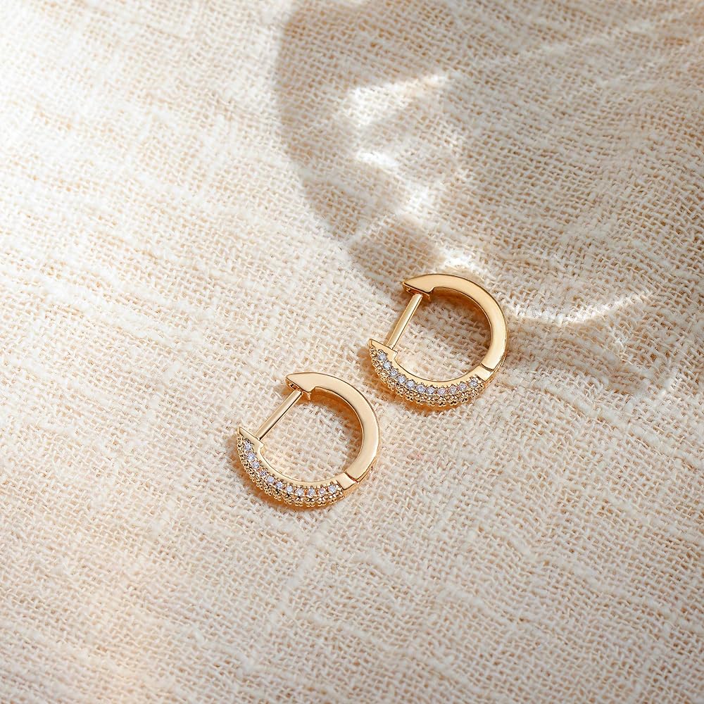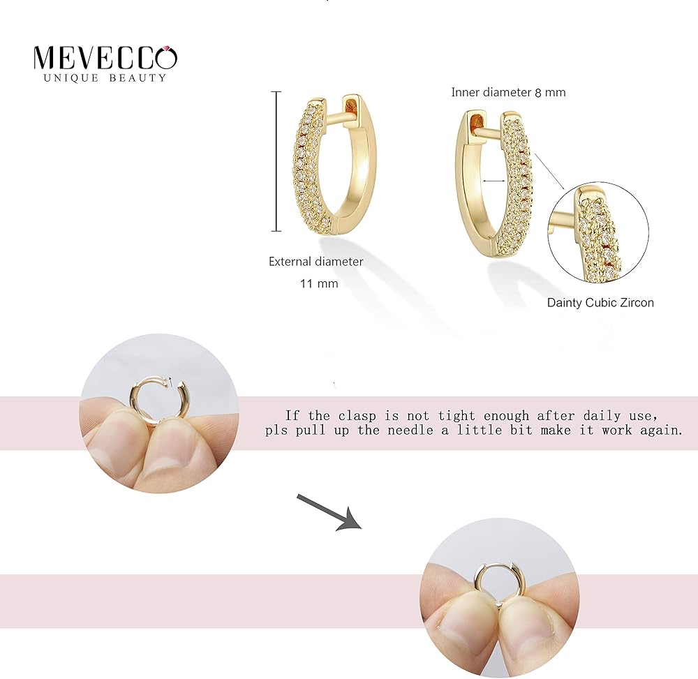Size: Unique dainty hoop earrings with shining cubic zriconia around, The inner diameter of Huggie earrings is 8 mm