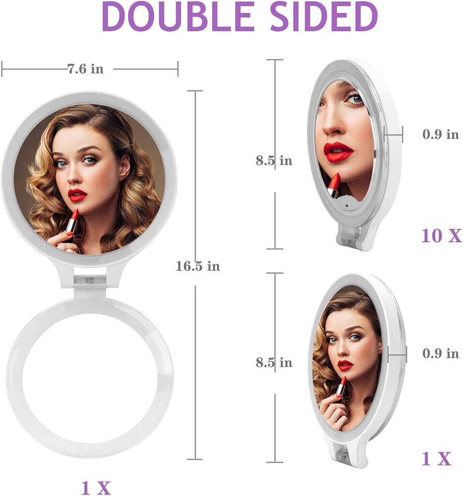 【 Portable Size 】: 7.6" diameter, 0.9" thick after folding. The foldable design does not take up much space. You can carry it with you in daily life, or when you are traveling or on business. NOTE: When using a magnifying mirror, your face must be slowly brought closer to the mirror to focus in order to get a clear picture.
