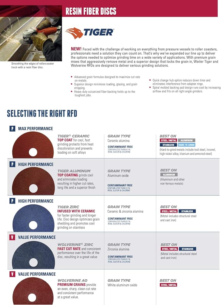 Weiler 62082 Wolverine Zirconia Alumina Resin Fiber Sanding & Grinding Disc, 9" Diameter, 24 Grit, 5/8" - 11 Hub (Pack of 25)