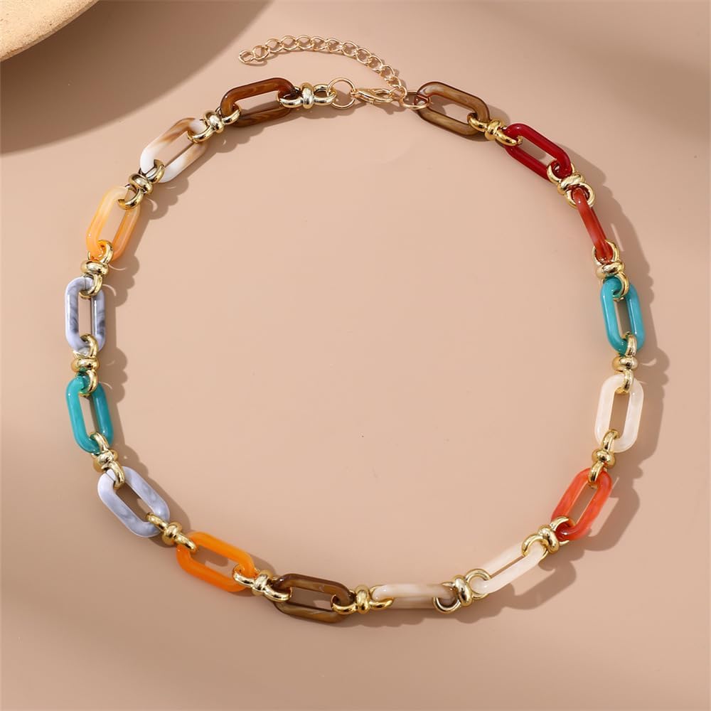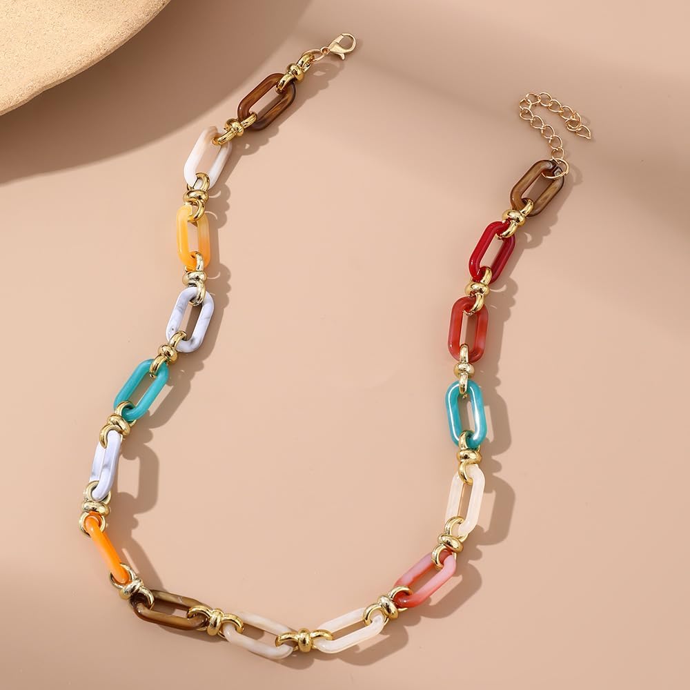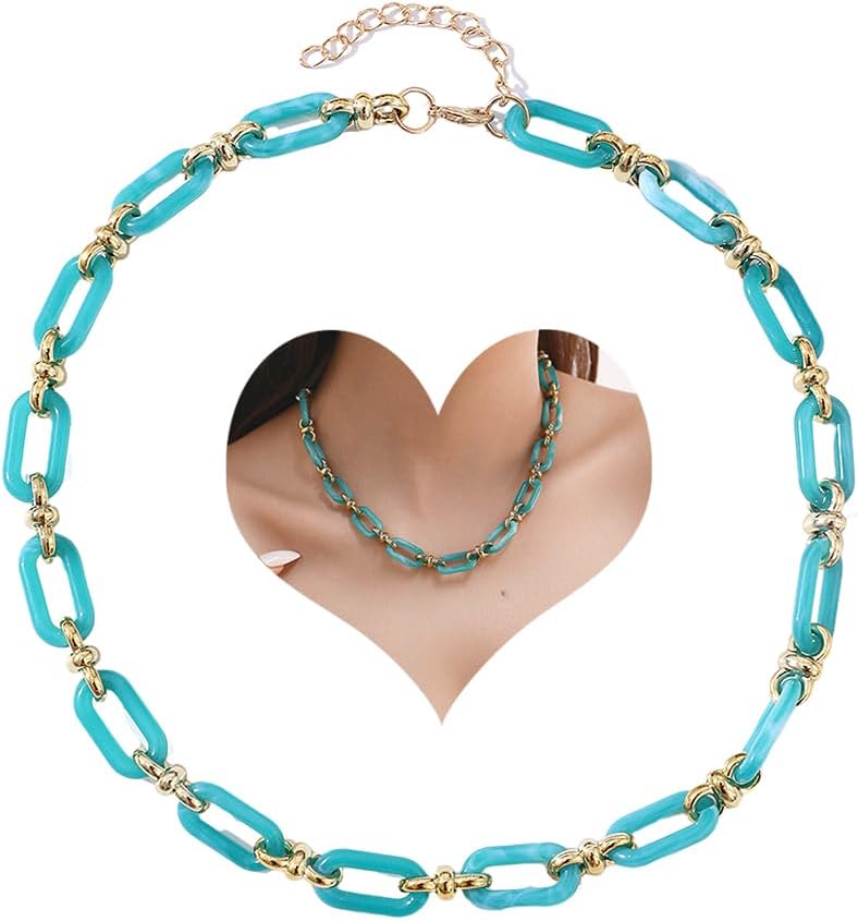 Material-- The cuban oval link neck chain is made of high-quality acrylic and alloy material, which is durable, lightweight and comfortable to wear. It is designed with cuban link chain, which makes it more eye-catching and adds a touch of elegance to your outfit