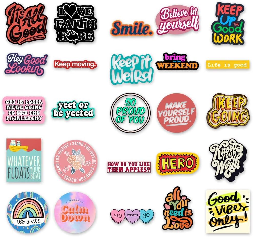 Inspirational Stickers of 50 Motivational Vinyl Decal Merchandise Laptop Stickers for Laptops, Computers, Hydro Flasks, Skateboard and Travel Case