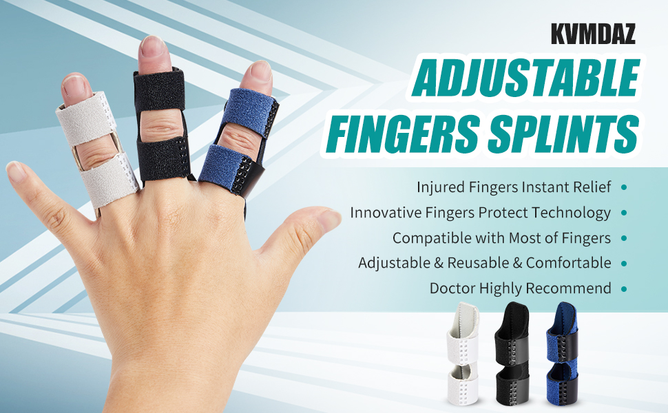 ☑️【ONE SIZE FITS MOST & ADJUSTABLE】Our KVMDAZ finger braces with velcro strap is easily adjustable to fit each finger of both hands and apply the amount of pressure that feels best to you. Perfect for index finger, middle finger, ring finger but also compatible with thumb finger, pinky finger.