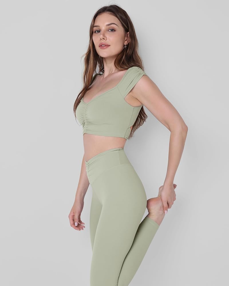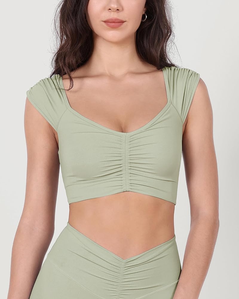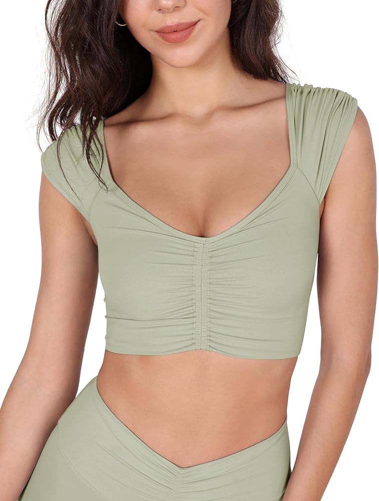 - ➤Ruched Front & Cap Sleeves: V-neck crop tops with pleated cap sleeves, ultra-flattering ruched detailing at the front.