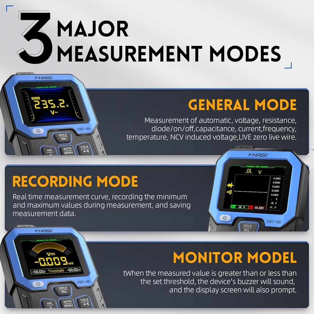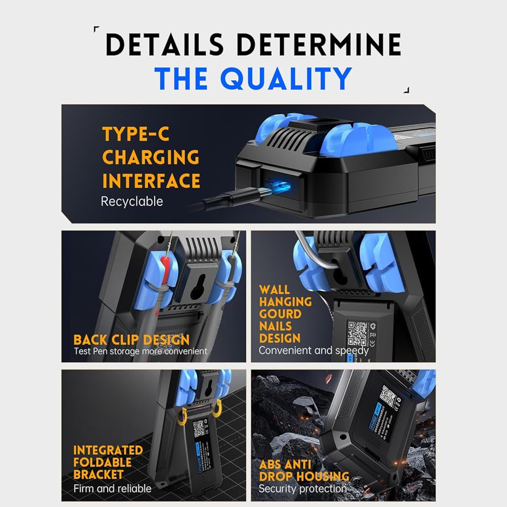 Wide Applications: Ideal for electrical testing, electronics overhaul, LED industry, auto repairing, and more. The multimeter is equipped with fine workmanship, a durable design, and various intelligent functions for efficient use.