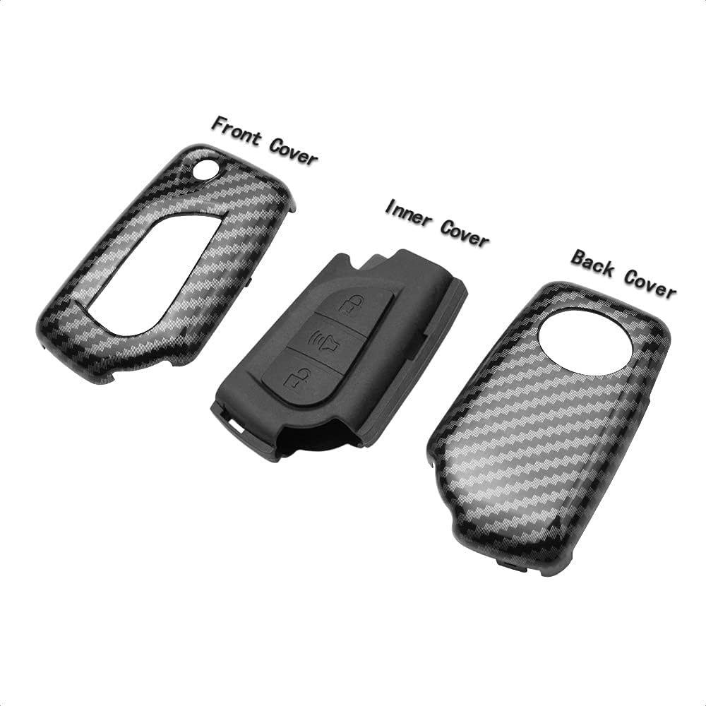 TANGSEN Flip Key Fob Case Compatible with Scion IM TC XB Toyota C-HR Corolla IM 3 Button Keyless Entry Remote Personalized Protective Cover Plastic Carbon Fiber Pattern Black Silicone