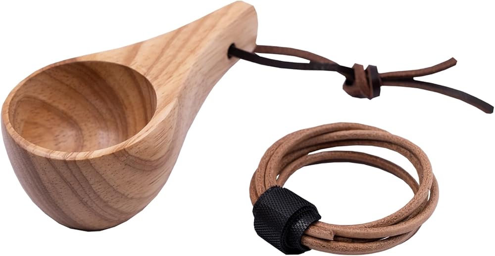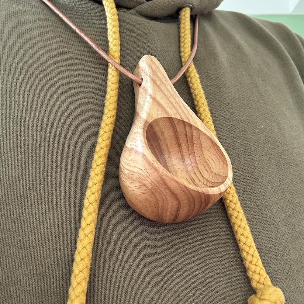 Easy to Use: With the fixing holes and leather rope, easily hang on twigs, backpack, or kitchen. With the additional 39-inch long leather cord, you can hang this mini wooden cup around your neck like a necklace while hiking or exploring outdoors. Ultra light and easy to carry.