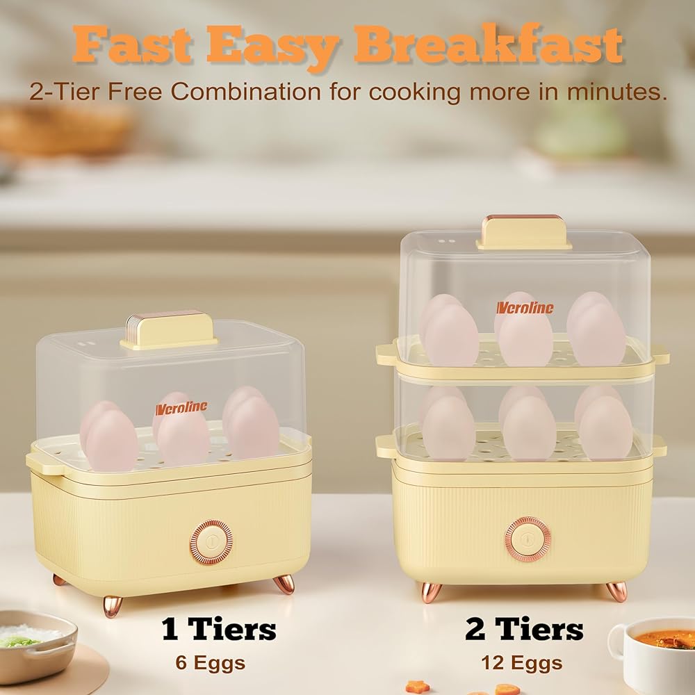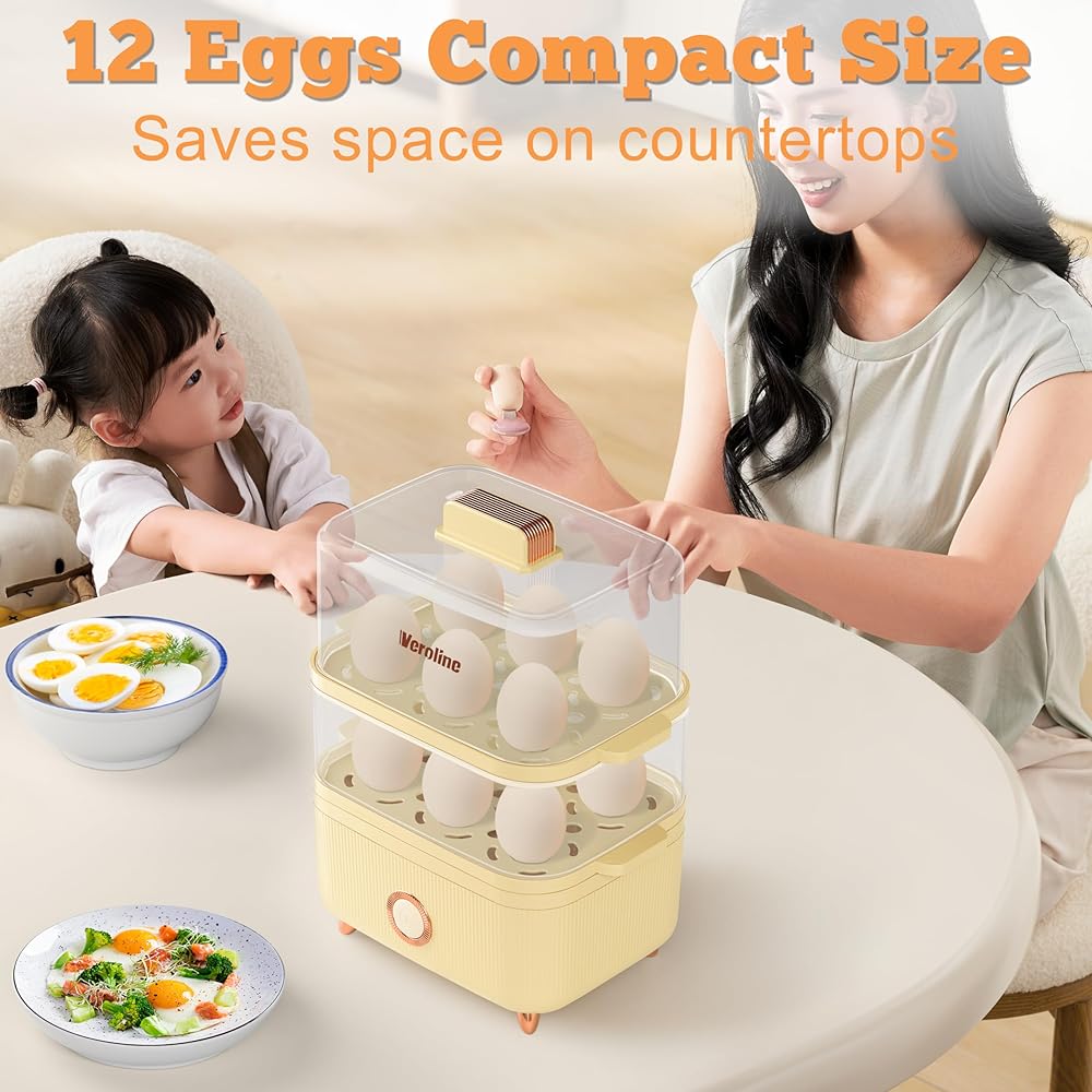 • 【12 Eggs Capacity】Designed with 2-Tier steam trays and a 2L capacity, our electric egg cooker cooks up to 12 eggs in soft, medium, or hard boiled firmness. Just add the right amount of water and set the alarm clock, the hard boiled egg cooker will cook your eggs for the perfect amount of time.