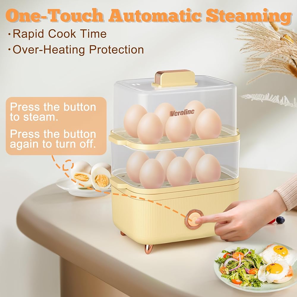 • 【Ready for Breakfast】With a robust 200W heating element, our electric cooker ensures easily boil eggs and steam fresh fruits, vegetables in minutes, faster than stovetop method. No need to wait for your hard-boiled eggs to cool to move them after cooking with the tray.