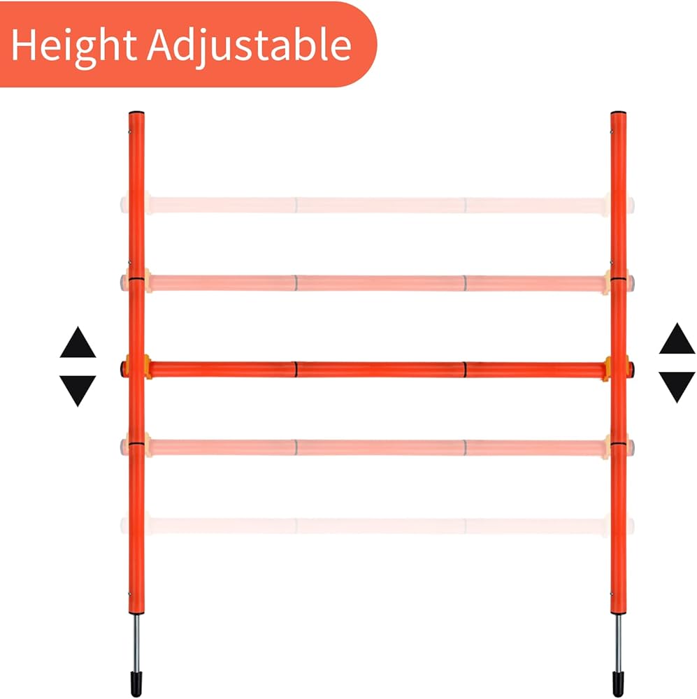 【Adjustable Height】The height of the hurdle can be changed according to different training plans. In order to prevent injury and properly train your dog, the hurdle bar lies in the supports instead of being attached.