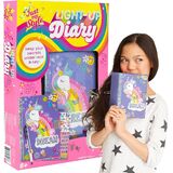 KIT INCLUDES: 1 Light-Up Diary With Lock (4.6 in. x 7 in., 40 Sheets), 2 Keys, 1 Purple Pen, 1 Sticker Sheet, Easy-to-Follow Instructions