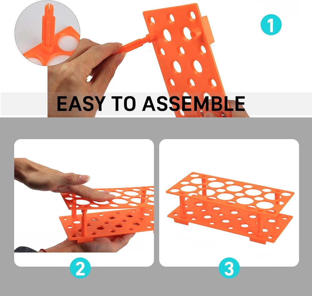 Detachable Design: Plastic detachable test tube rack, simple structure, very easy to assemble.