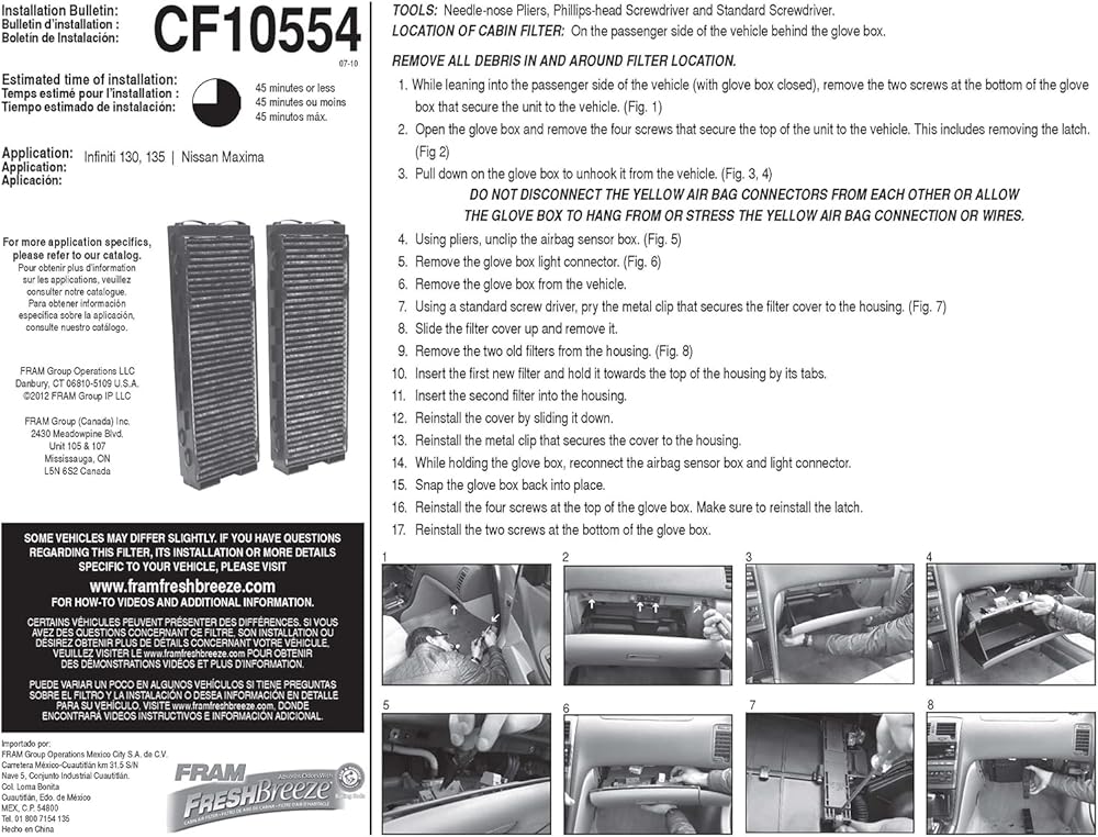EASY INSTALL: This cabin air filter is located behind the glove box and on average will only take 15 minutes to replace the old filter with a new filter. It is important to replace your cabin air filter periodically to help keep the air in your vehicle clean. During extreme weather and heat, the HVAC system has to work harder and a clean cabin air filter is essential in helping your HVAC system run more efficiently.