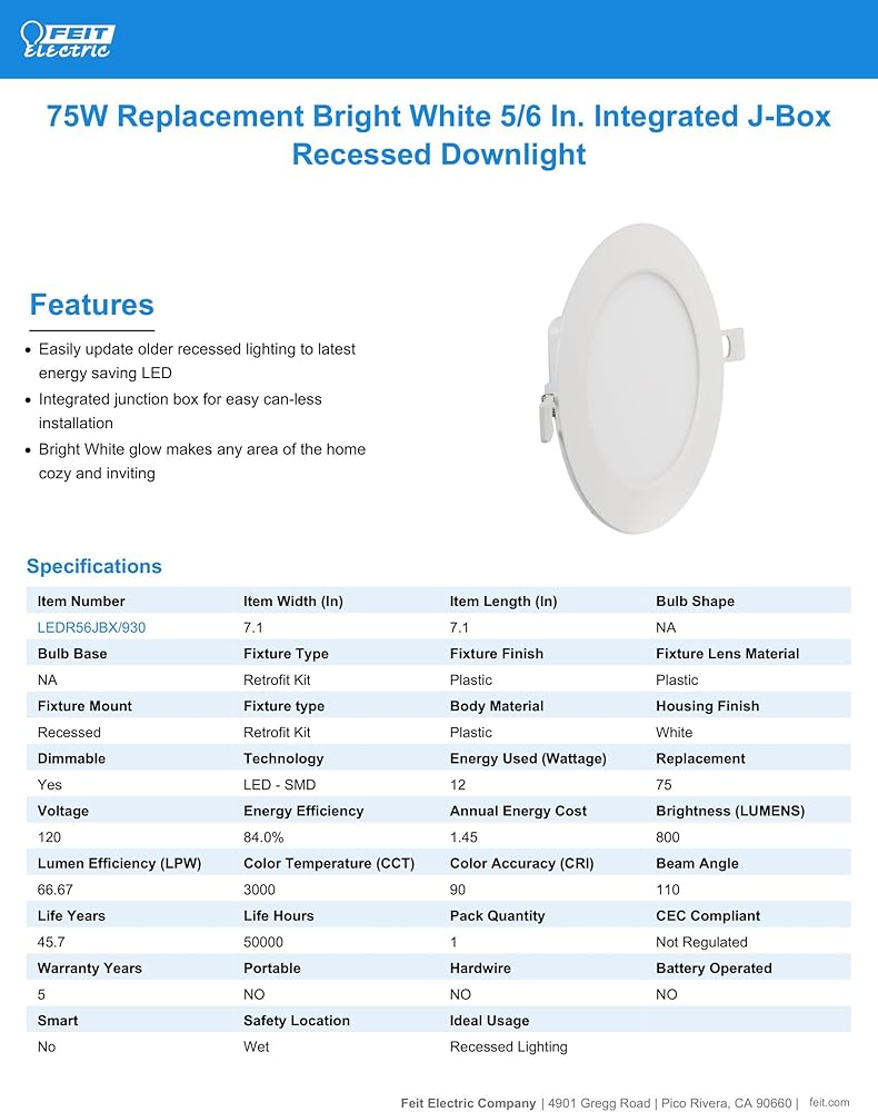 Easy Installation: Designed for hassle-free installation, these recessed lights come with user-friendly instructions and are compatible with standard 5-inch recessed housings.