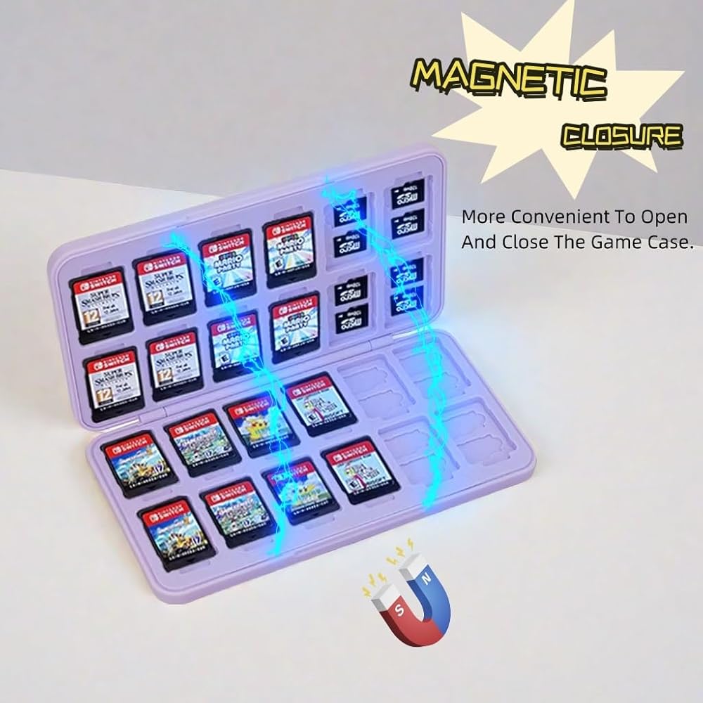 【Magnetic Closure】The built-in magnetic closure design makes the case easier to open and access. The built-in magnets ensure that the game card box stays tightly closed, and you don't have to worry about the game card falling.