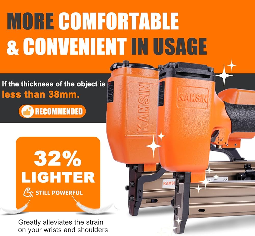 【Lightweight & Powerful: 】Lightweight die-cast aluminum housing and wear-resistant aluminum alloy magazine make the overall body lighter. Stronger firing pin, powerful chamber and hardened tungsten steel muzzle reduce recoil. Makes work easier.