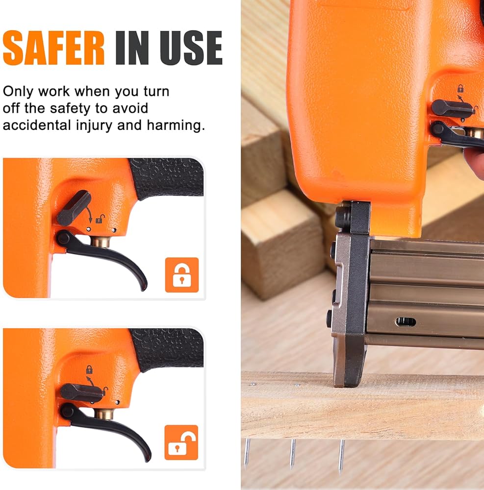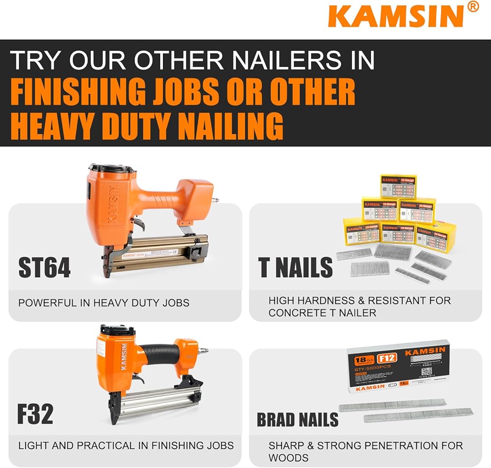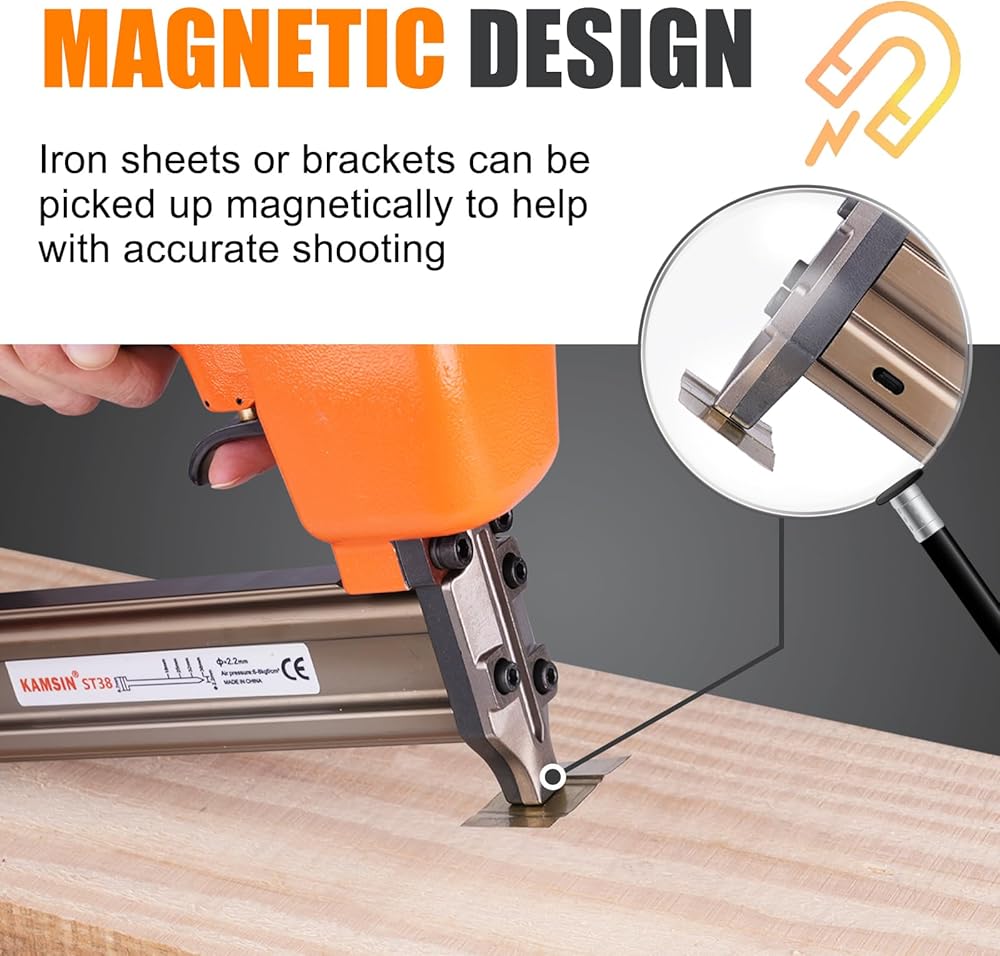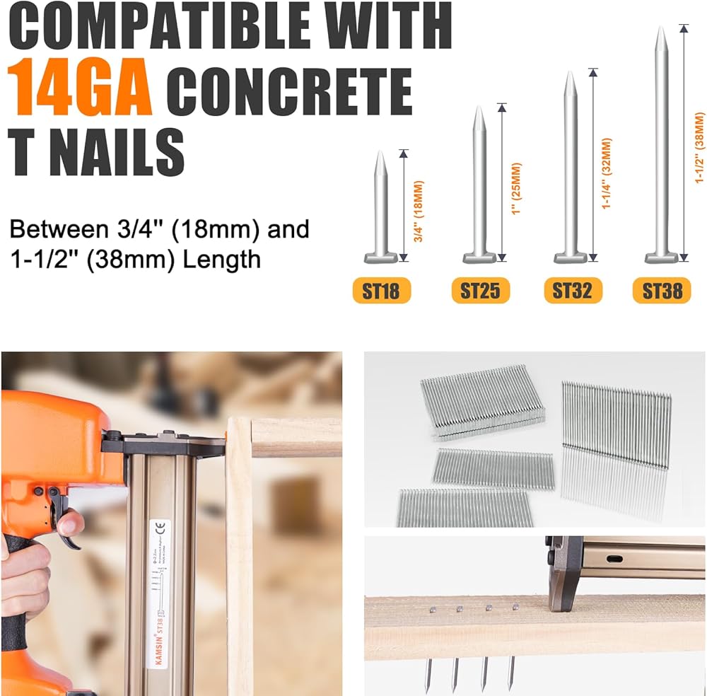 ST38H 14 Gauge Pneumatic Concrete T Nailer With Safety Lock,3/4-Inch to 1-1/2-Inch(18mm-38mm) Leg Length Air Heavy Duty Concrete T Nails Gun, Brad Nail Gun for Woodworking, Crafts, Furniture